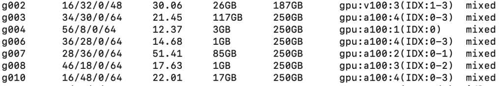 This information tells us that nodes g[003-010] provide us with the appropriate A100 nodes in order to execute our jobs. In our slurm file, we will create a nodelist based on these nodes to ensure that our job does not get delegated to other types of nodes (which, if this does happen, may almost certainly lead to an execution error)